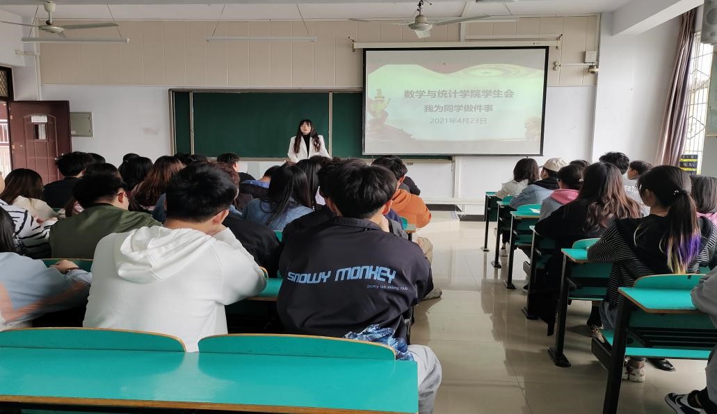 为践行服务同学的宗旨、深入贯彻习近平总书记致全国青年联合会第十三届委员会全体会议及中华全国学生联合会第二十七次代表大会所传达的精神,信阳学院数学与统计学院积极响应号召开展了“我为同学做件事”系列活动。我院于4月24日上午在数计楼309教室召开了“我为同学做件事”宣讲会议,会议由学院团总支书记孙美主持,40余名学生会干部成员参加了会议。