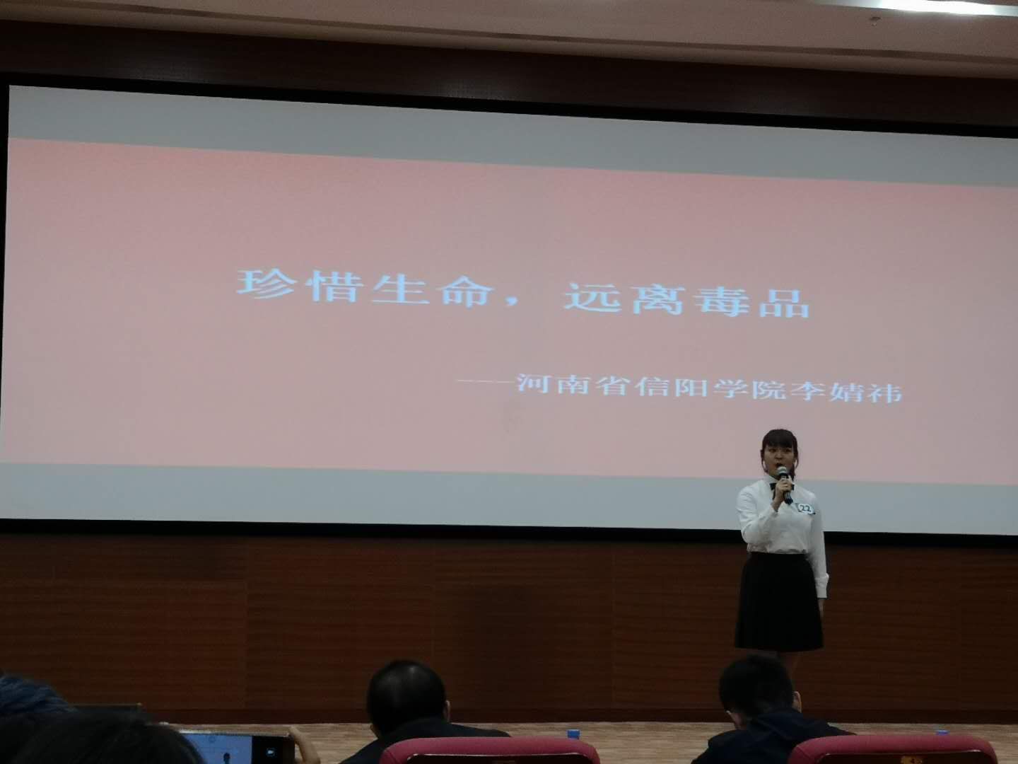 12月15日,由国家禁毒委员会办公室、中国禁毒基金会主办,广西壮族自治区柳州禁毒委员会承办的全国禁毒演讲比赛在柳州拉开帷幕。我校数学与信息学院优秀学子李婧祎以省赛第一名的成绩代表河南省参加全国比赛的角逐,荣获优秀奖。