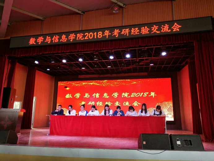 5月8日下午,数学与信息学院在大学生活动中心举办2018年考研经验交流会。院长郝涌教授,党总支书记张俊忠,学工干事李平,行政干事闫珍珠,相关辅导员,2018年考取研究生的学生代表及2015级全体学生参加了本次会议。大会由李平主持。