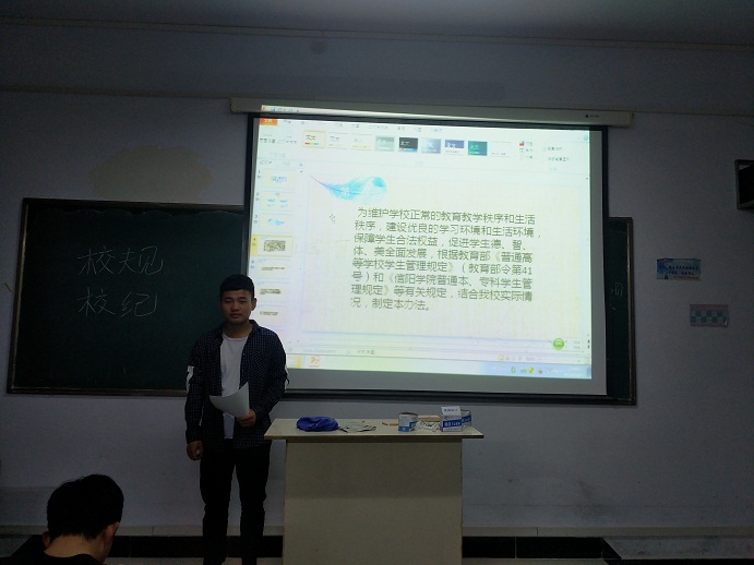 辅导员朱纪诚老师强调:“通过加强学生对于校规校纪认识,使同学们能够更好的领悟到学校的教育理念,从而不断加强自律意识,实现自律与他律的良性互动。校规校纪教育起着培养学生、促进学生健康成才的重要作用。加强高校学生对校规校纪的理解程度将大大有利于加强在校大学生的思想道德建设。”