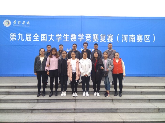 11月11日上午,第九届全国大学生数学竞赛复赛(河南赛区)在驻马店举行,由黄淮学院承办。来自全省37所高校共541名参赛选手参加此次大赛。我校由数信学院党总支书记张俊忠、教学秘书毛凤翔、专业教师王玉磊、李金伟带队,10名学生参加竞赛。