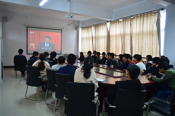 数信学院院长郝涌、党总支书记张俊忠、教学秘书毛凤翔、学工部干事李平、行政干事闫珍珠、团总支书记王晶,辅导员司杰、徐雪涵、朱纪诚、庞宇江和50位学生一起在数计楼510会议室集中收看开幕会。专任教师以其他形式收看收听开幕会。全院师生以多种形式畅谈感受,热议党和国家的建设成就、未来发展方向和中央重大战略部署。