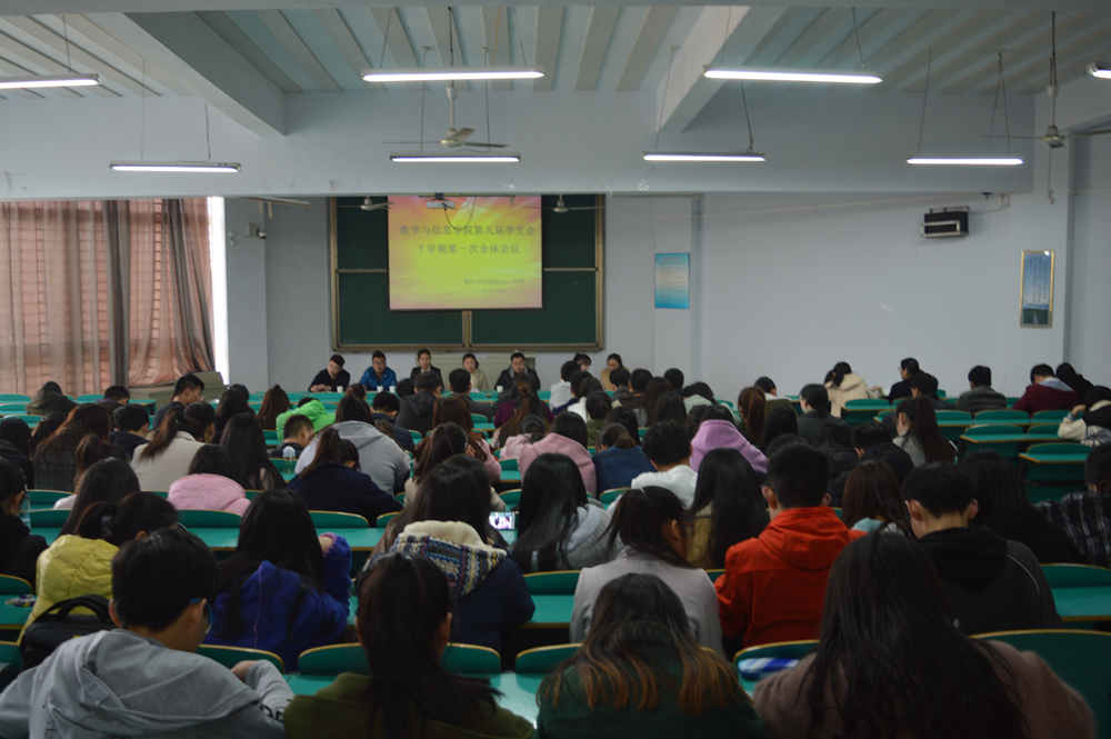 日前,数学与信息学院在数计楼106室召开第九届学生会下学期第一次全体会议,团总支、学生会主席团成员、学生会全体成员参加本次会议。由团总支副主席黄鸿亮主持会议。