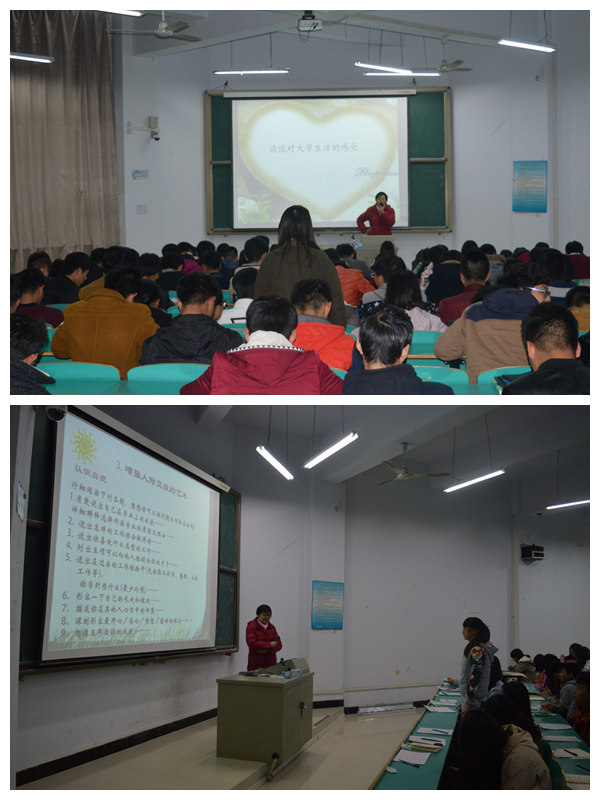 黄冉冉首先以“对大学的初次见面印象是什么”的幽默小问题开场,自然巧妙的将同学们的思绪带进了本次的课堂主题。随后,黄冉冉老师分别从学校适应、环境适应、学习适应、人际关系、心理适应等不同方面分析了大学遇到的各种问题并给出合理的建议。此外,黄冉冉老师还结合大学宽松、自主、自由的特点给新生三方面的建议:一、调整自己的学习方法,合理分配自己的时间,让时间充分有效的利用;二、把大目标分解成一个个小目标,继而一步步实现自己的最终目标;三、在生活中做到不盲目、不放弃、不自卑,用正确的心态面对遇到的挫折。课堂最后,黄冉冉老师还组织进行了“心理适应性测试”,同学们认真的配合,积极的参与讨论,本次团课在愉快宽松的环境悄然结束。