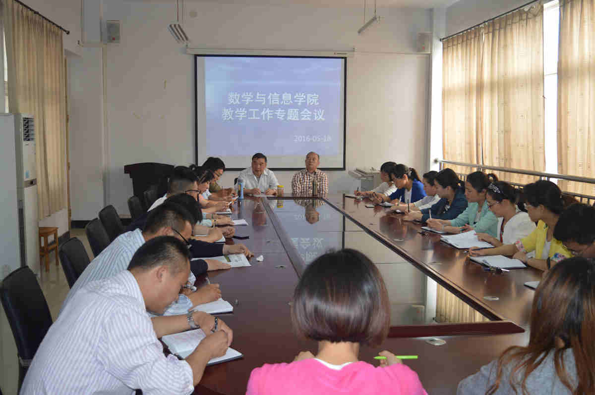 5月18日下午,数学与信息学院在数计楼510室召开教学工作专题会议,院长郝涌教授,院专家裴惠生教授、周顺生教授及全体教师参加了本次会议。