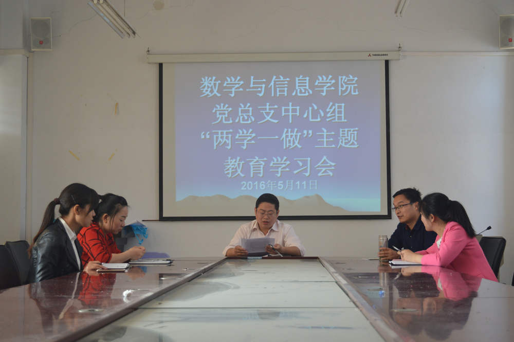 5月11日上午,数学与信息学院党总支中心组在数计楼510室召开“两学一做”主题教育学习会。院党总支全体委员参加了会议,会议由总支副书记秦笠主持。