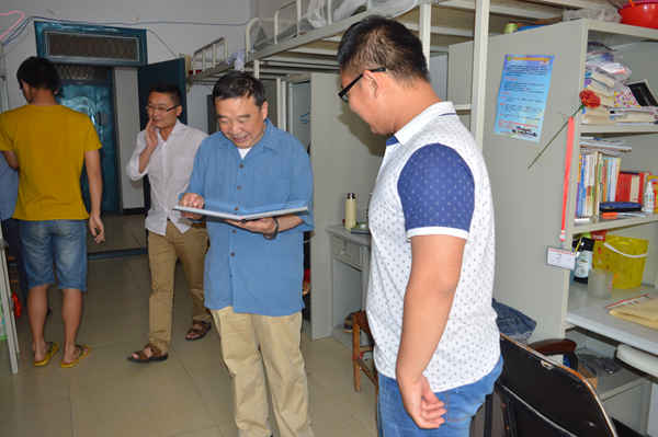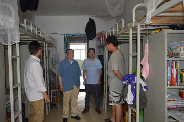 6月4日,为确保数学与计算机科学系251余名毕业生全部安全文明的告别校园,数学与计算机科学系系主任郝涌教授在系秘书毛凤翔、余兴旺、秦笠及毕业班班主任周扬等老师的陪同下走访了2015届毕业班学生寝室,并与同学们深情话别。