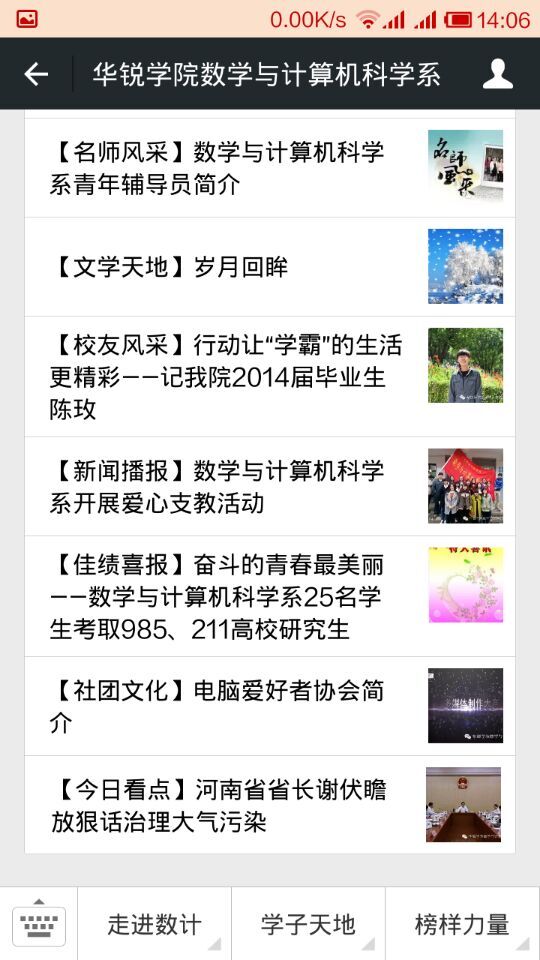 华锐学院数学与计算机科学系官方微博、微信于2014年正式开通,本着运用新兴媒体服务同学、宣传系内发展建设的宗旨,微信公众平台通过审核认证并正式开通标志数学与计算机科学系网上宣传平台正式启动。