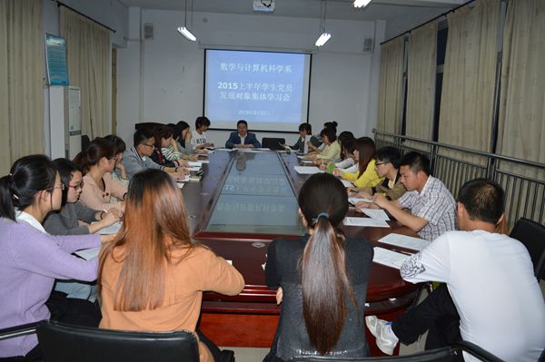 3月31日晚,数学与计算机科学系在数计楼510会议室召开2015上半年重点培养对象集体学习会议,系党总支副书记秦笠、学生党支部书记王晶、司杰及重点培养对象参加了学习会。