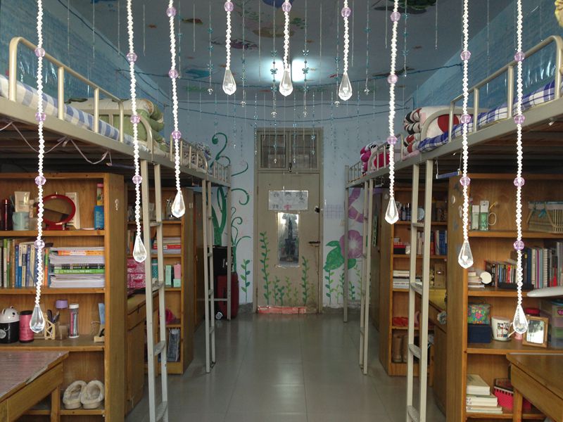 当你缓缓打开120的寝室门,一阵淡淡的香味迎面而来,安宁而又清净,让你不忍打扰。踏入几步,墙上蓝色的壁纸映入眼帘,仿佛是置身于蓝色的海洋,脑海里想着吹着海风踩着沙滩的愉悦。阳台会射进阳光,在房间内形成一圈圈光晕。白色的墙壁上偶尔点缀着青草翠竹,这时你又会感觉到你好像站在蓝天白云碧草连天的广阔天地里,让你遐思,让你倾听,让你驻足。干净开阔的寝室,与银白色的床架没有明显的颜色冲突,淡色的床单,整齐的被子,与书桌上的摆饰相得益彰。玲珑的配饰在墙上舒服的睡着,窗台上的毛笔字在绿色的纸片上酝酿着沉思。你会禁不住为这些文字赞叹。进入阳台,水桶、盆子安放整齐,扫把、灰斗竖在墙角,一个个沐浴着阳光。