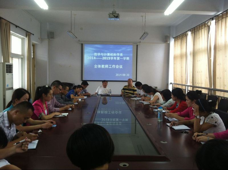 8月30日下午,数学与计算机科学系召开新学期全体教师工作会,系主任郝涌教授、系特聘教授裴惠生教授及全体教师参加了本次会议。
