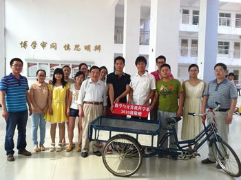 为了给数学与计算机科学系团学工作提供便利,2014届毕业生向该系捐赠三轮车1辆。在校生代表张琦接过学长们的馈赠,并对2014届全体毕业生表示感谢。