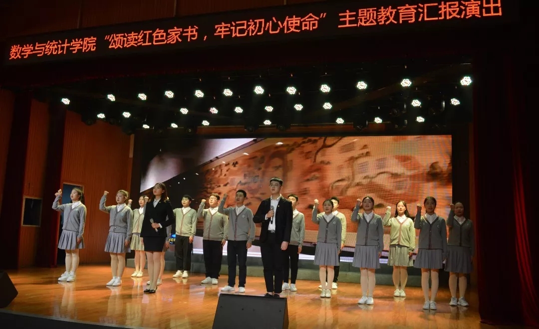 为深入推进“不忘初心、牢记使命”主题教育,增强教育感染力、感召力。12月19日,数学与统计学院在大学生活动中心开展“颂读红色家书,牢记初心使命”主题教育汇报演出。纪委书记、校长助理杨高伟、院长俞迎达、党总支副书记李平以及部分院系辅导员参加了此次汇报会。同学们将家书内容以角色扮演、情景重现、配乐颂读等形式展现出来,让大家从一封封饱含深情的家书中,感受到革命先烈的忠贞信仰、体会到无怨无悔的奉献与担当。
