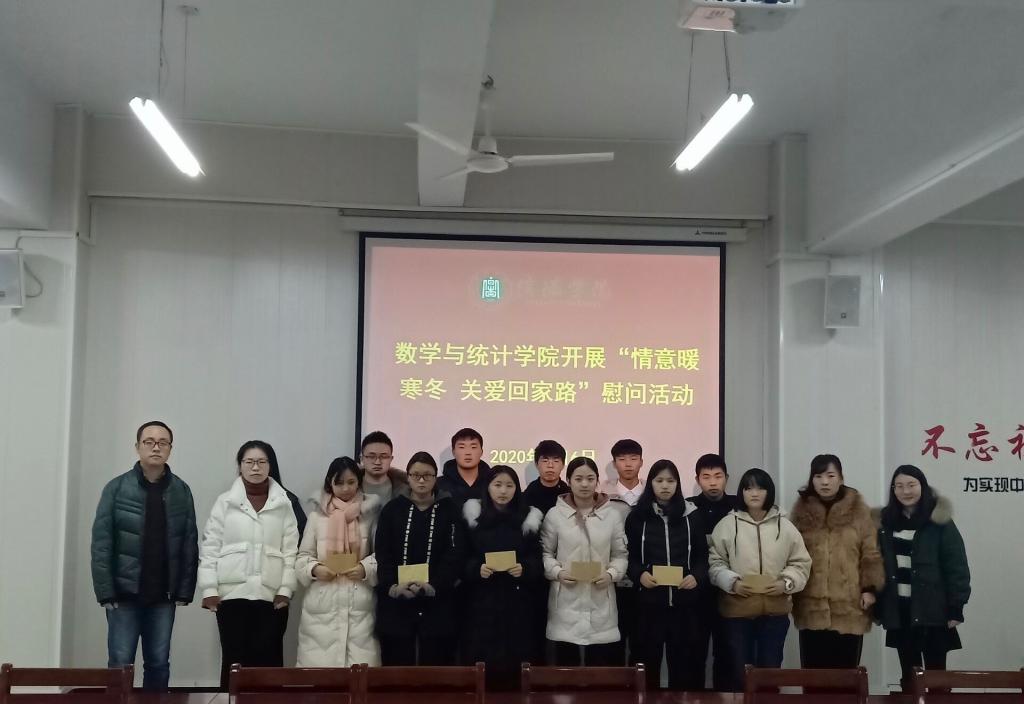 数学与统计学院一直十分重视家庭经济贫困学生的资助工作,多年来一直坚持开展冬季送温暖活动,慰问家庭经济困难的学生。该项活动表达了学院对家庭经济困难学生的深切关怀和期望,不仅给予了他们精神上的鼓励,也为我校改善资助育人体系,为贫困学生提供更精准的帮扶起到了积极促进作用。