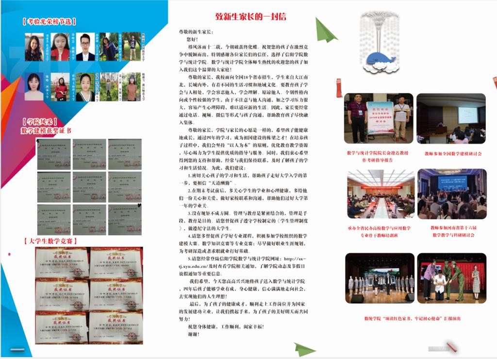栉风沐雨十二载,今朝破茧终化蝶。祝贺您的孩子在激烈竞争中脱颖而出,特别感谢各位家长们的信任,选择了信阳学院数学与统计学院。数学与统计学院全体师生热忱的欢迎您的孩子加入我们这个温馨的大家庭!