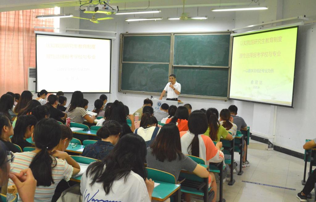 9月11日上午,数学与统计学院院长俞迎达教授在数计楼106室作了题为《认知我国研究生教育制度,理性选择报考学校与专业》的专题报告。该院教师代表与200余名学生共同聆听了报告。