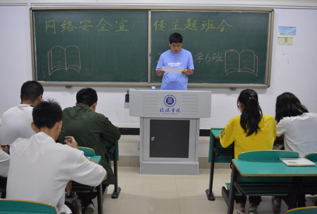 9月17日晚,各行政班在辅导员的指导下,围绕学生的不良上网习惯,选择发生在身边的典型案例,组织和引导学生就身边存在的网络安全隐患讨论等话题,展开了网络安全主题班会,教育学生从自身做起,遵守网络安全准则。