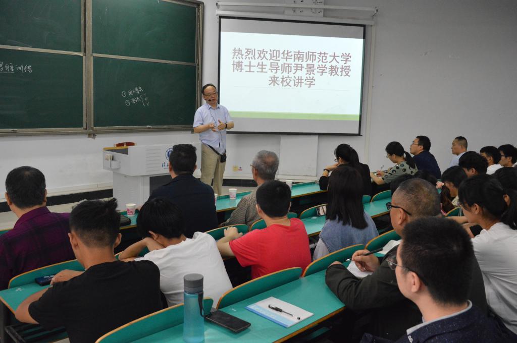 9月20日上午,华南师范大学博士生导师尹景学教授应邀在数计楼105教室作了题为《不等式思维训练》的专题报告。数学与统计学院院长俞迎达、党总支副书记刘颖方、教学副院长张聪、教师代表及200余学生共同聆听了本次报告。报告由俞迎达主持。