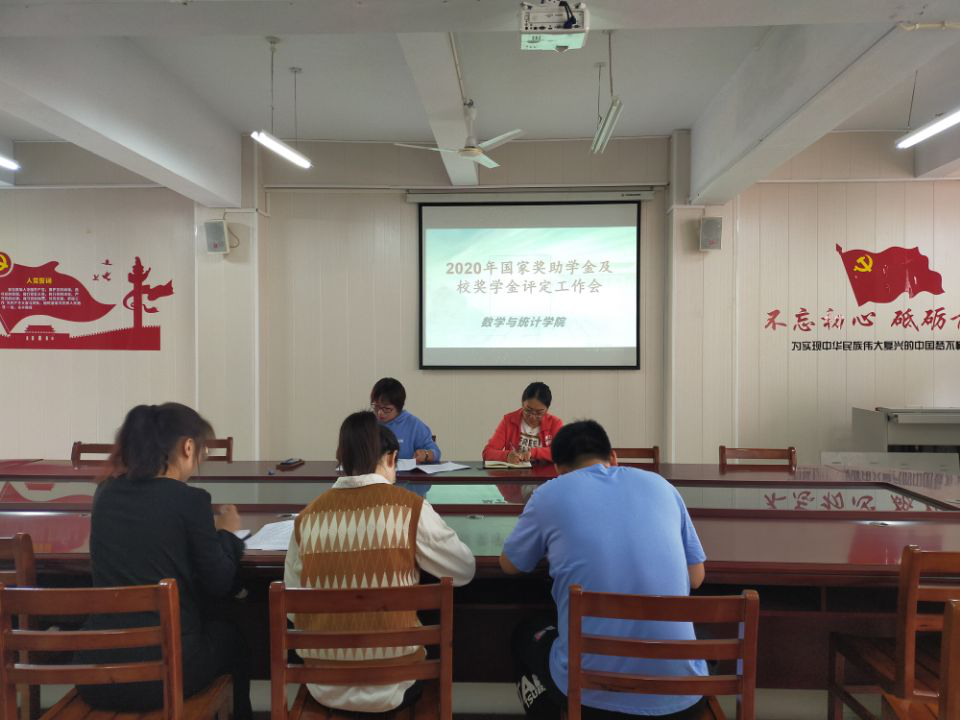 9月24日上午,数学与统计学院在数计楼407会议室召开2020年国家奖助学金及校奖学金评定工作会,党总支副书记刘颖方、学工干事田媛、全体辅导员老师参加了会议。