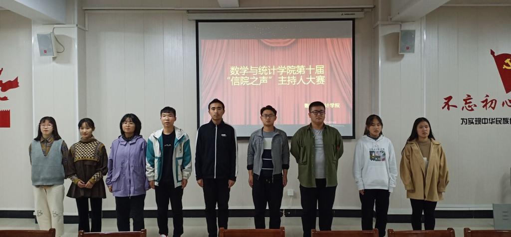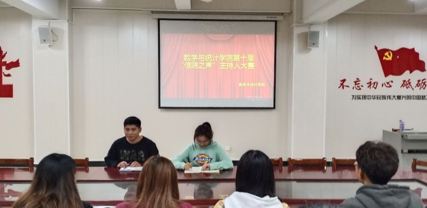 2020年10月19日,“信院之声”主持人大赛初赛在信阳学院数学与统计学院数计楼407完美落幕。本次大赛由我院文艺部组织,参加本次活动的有辅导员胡涛、白智然及各班参赛选手。本次大赛由文艺部部长任淑鸽主持