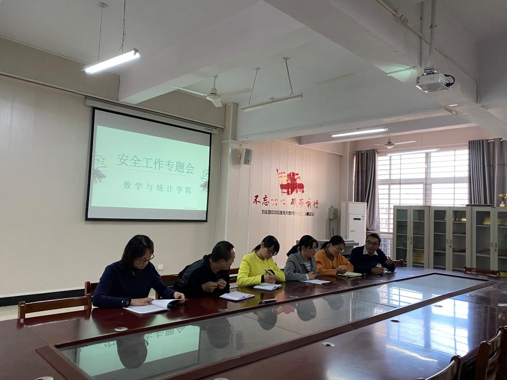 11月4日下午,数学与统计学院在数计楼407会议室召开期中教学工作暨实验室安全会议。本次会议通过线上线下相结合的方式进行。院长俞迎达、党总支副书记刘颖方、教学副院长张聪等与全体教工参加了会议。