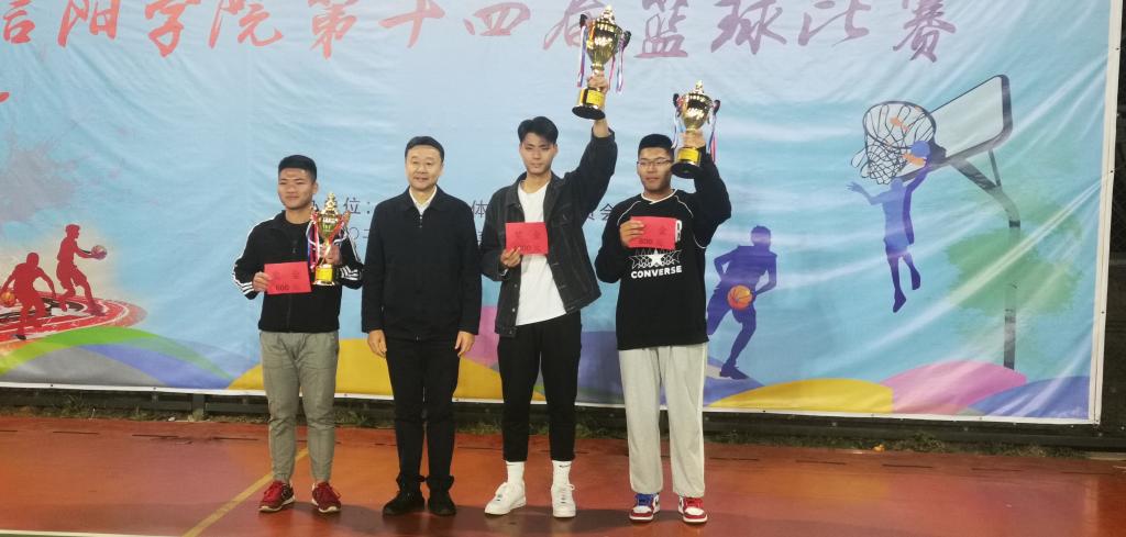 在篮球场上,在耀眼的灯光下,在比赛哨声响起的那一刻,球员都迅速燃起激情,默契的配合,精准的投篮让人应接不暇,大饱眼福。每当球员摆脱夹击并投篮成功时,场边都响起雷鸣般的掌声。在经过三个多星期的比赛,信阳学院第十四届篮球赛在11月5日晚圆满落下帷幕。在本次篮球赛中数学与统计学院教职工获得第八名,学生女子组夺得亚军,学生男子组获得季军。感谢球员们为我们呈现出如此精彩的比赛,一场球赛的背后凝聚的是教练的精心指挥,队员们的奋力拼搏,更是我们看不见的汗水和努力。希望在未来的日子里大家依然能够记得赛中团结协作的精神,不放弃不抛弃,面对困难迎难而上。