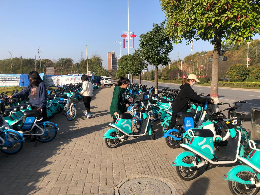 活动过程中,大家将路边乱放的单车,集中摆放整齐,并为单车清洁。同学们将东倒西歪的单车整理地井井有条,有序的排放在街道两旁,为大家的使用提供了便利。