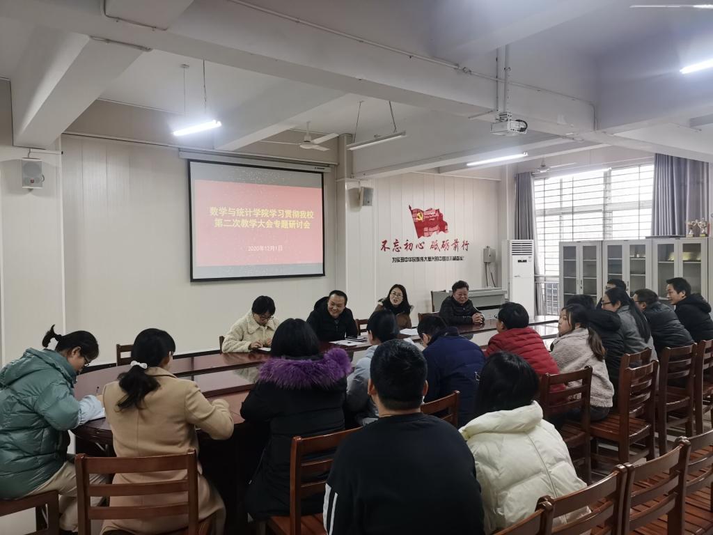 为深入学习领会学校第二次教学大会精神,12月1日下午,数学与统计学院在数计楼407会议室召开学习学校第二次教学大会精神专题研讨会。党总支副书记刘颖方主持会议,全体教师参加了会议。