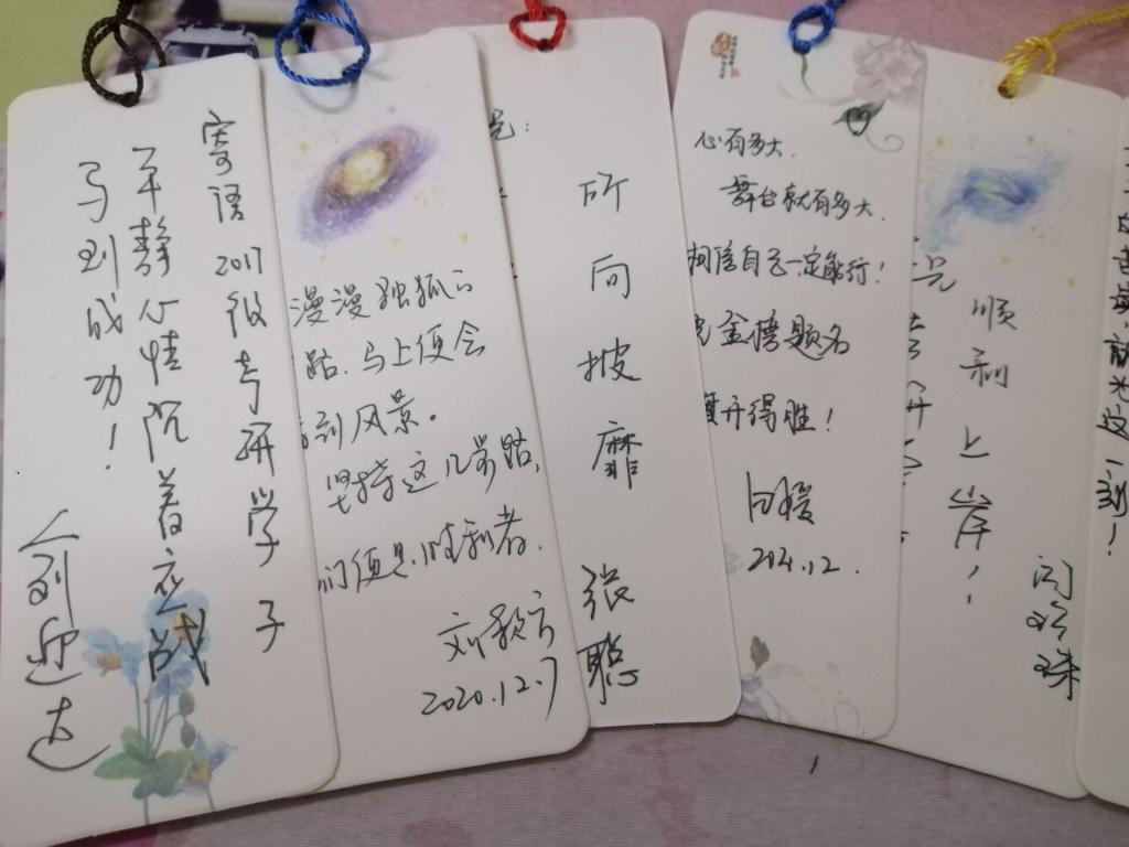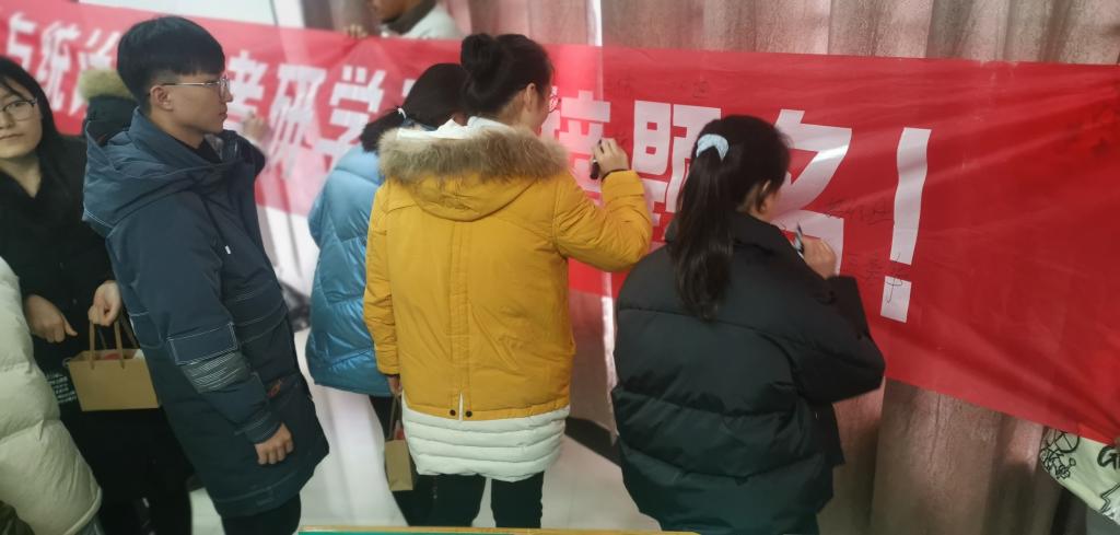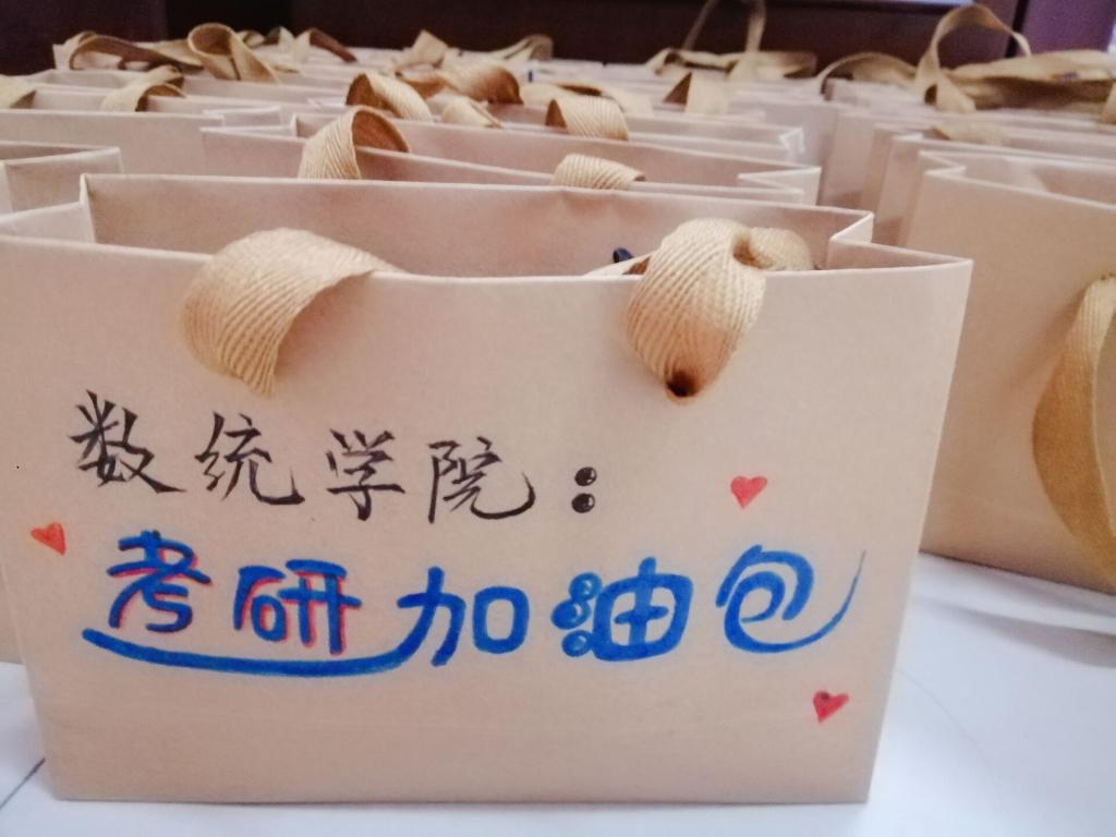 最后由学院领导、老师给同学们发放了学院精心设计的考研加油包,并组织同学们在金榜题名条幅上签名,预祝同学们考研成功,金榜题名!加油包中我们为同学们准备了旺仔牛奶、平安果和老师们亲笔写的考研祝福卡,预祝同学们在新的一年牛气冲天一路旺!圣诞快乐,一生平安!