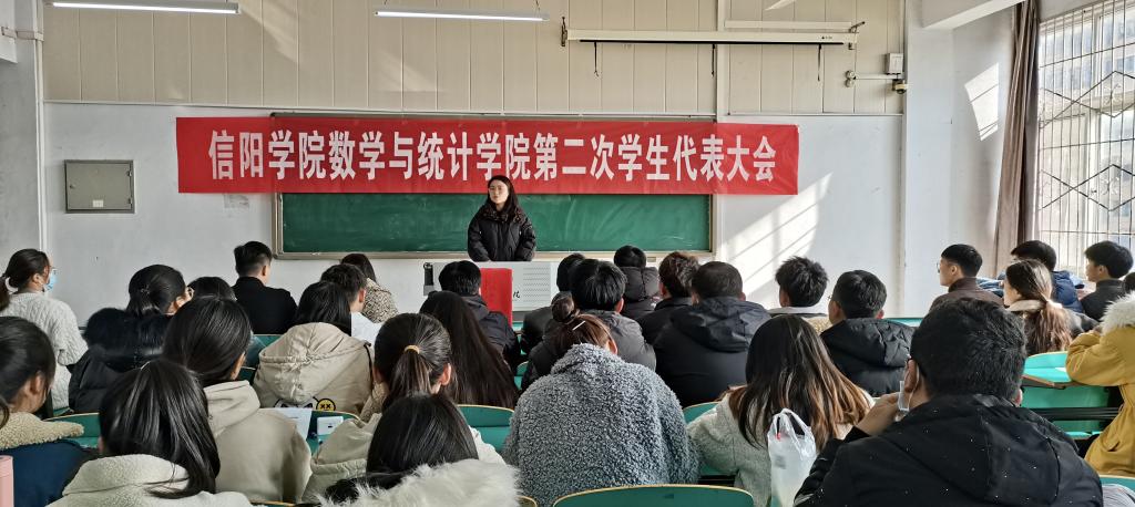 根据校团委的统一工作安排,在信阳学院第二次学生代表大会即将召开之际,12月11日下午,数学与统计学院在数计楼309教室召开了本院第二次学生代表大会暨学生代表选举大会,与会领导老师有:数学与统计学院党总支副书记刘颖方、团总支书记白智然和辅导员胡涛,团总支书记白智然主持了此次会议,学院各级、各班共百余名学生代表参会。
