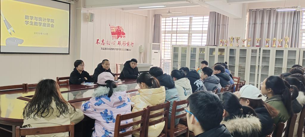 为加强师生沟通,广泛收集学生对学院教学工作的建议,进一步推进教学管理和学风建设工作,12月21日,我院在数计楼407会议室召开本学期学生教学座谈会。参加此次会议的人员有学院教学副院长张聪、学工干事田媛、全体辅导员、2018级、2019级、2020级各班学委和学生代表。此次会议由胡涛主持。