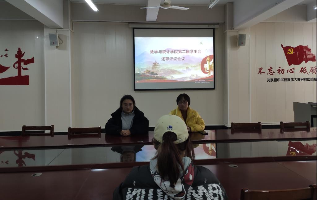 按照共青团中央、教育部和全国学联印发的《关于推动高校学生会(研究生会)深化改革的若干意见》的相关要求。12月29日,数学与统计学院学生会2020-2021学年第一学期述职评议会在数计楼407会议室举行。学工干事田媛、团总支书记白智然出席会议,学生会主席团主席进行了述职。