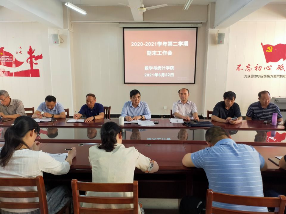 6月22日下午,数学与统计学院在数计楼407会议室召开期末工作会。院长俞迎达,教学副院长张聪,各位专家教授、干事,全体教师和辅导员参加了会议。