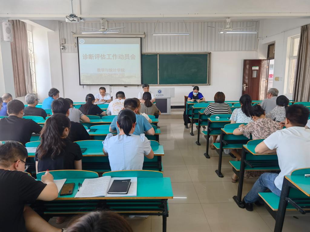 6月17日下午,数学与统计学院在数计楼301教室召开诊断评估工作动员会,学院全体教工参加了此次会议。会议由党总支副书记刘颖方主持。