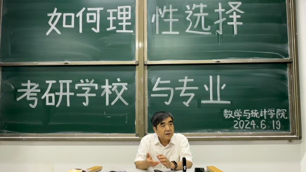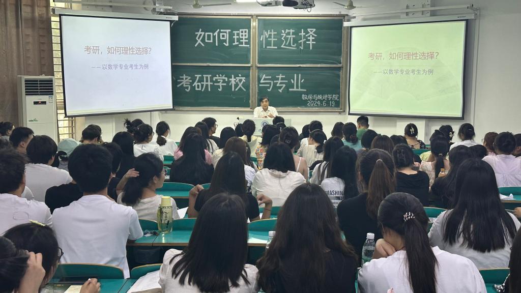 为帮助学生明确考研目标,进一步掌握备考策略,优化学习路径,6月19日下午,数学与统计学院在数计楼105教室举办题为《如何理性选择考研学校与专业》的考研专题指导报告,报告由院长俞迎达主讲,学院全体辅导员、专业教师代表及2021级考研学子参加了此次报告会。