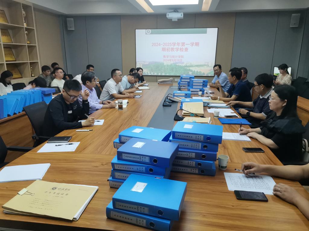 为确保新学期教学工作正常有序进行,加强教学管理和教风学风建设,9月19日上午,教学质量监控中心主任陈文涛带领校督导组莅临我院检查指导2024-2025学年第一学期期初教学检查工作。出席本次会议的有数学与统计学院院长俞迎达、教学副院长张聪、教务员肖亚、周文娟和部分骨干教师。
