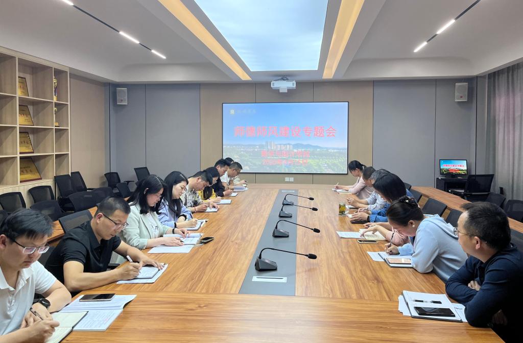 院长俞迎达就加强师德师风建设提出三点要求:一是提高政治站位,深刻认识师德师风建设是落实立德树人根本任务的重要保障;二是弘扬教育家精神,坚持师德师风第一标准,将其作为教师立身之本;三是强化行为自觉,将师德要求内化于心、外化于行,坚决守住底线。