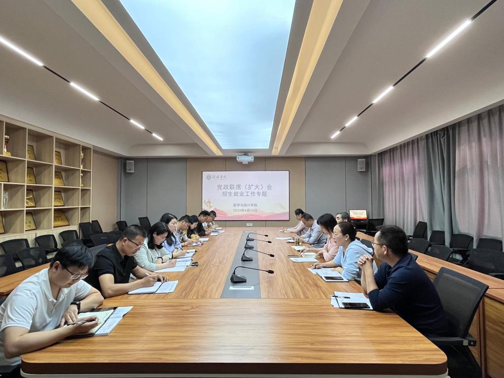 为进一步推动2025届毕业生高质量就业,4月15日下午,数学与统计学院在社科楼419会议室召开党政联席(扩大)会议,专题研究招生就业工作,学院班子成员、各教研室主任、党支部书记、毕业班辅导员参加会议,会议由党总支书记高昌慧主持。