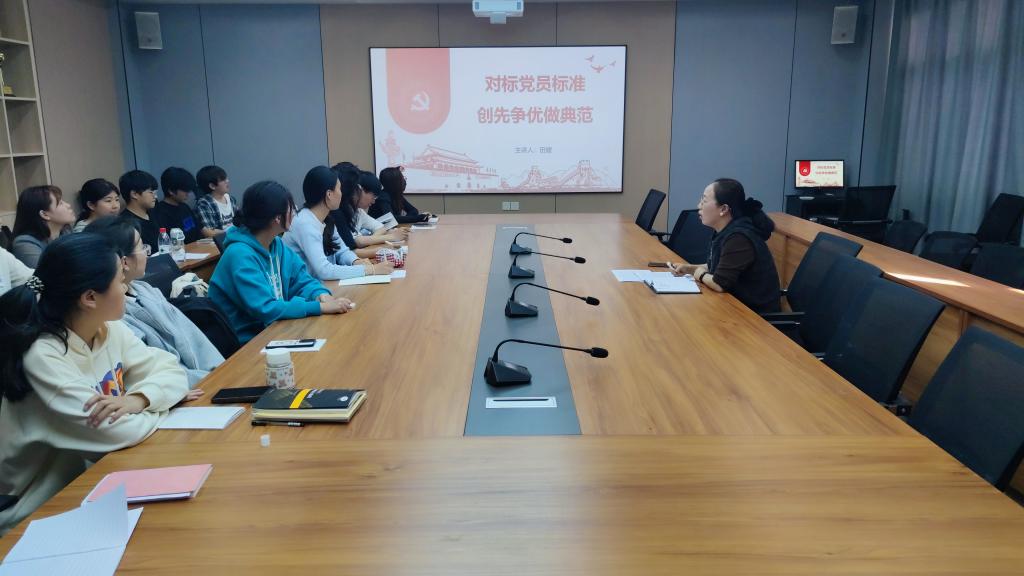 4月14日,党总支统战委员田媛以《对标党员标准,创先争优做典范》为题,从“对标党员标准”“学生党员应具有的意识”“学生党员应具备的能力”三个方面进行深入讲解,指出学生党员应该做思想的领航者、学业的攀登者、实践冲锋者、创业的破冰者。