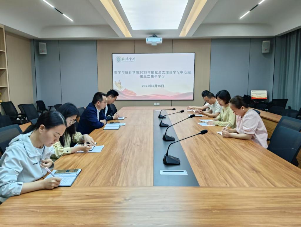 5月15日下午,数学与统计学院在社科楼419会议室召开党总支理论学习中心组第三次集中学习会议。院党总支委员、各党支部书记参加了会议。会议由党总支书记高昌慧主持。