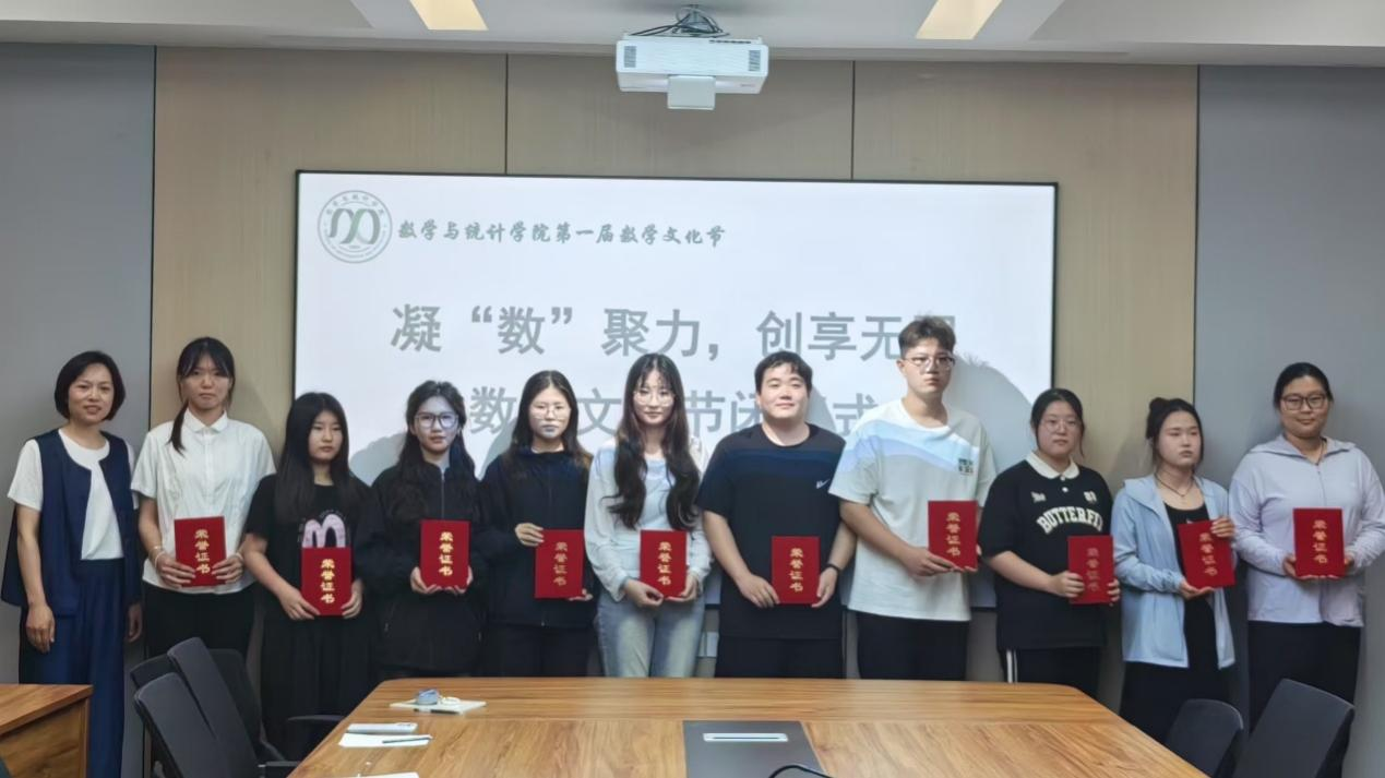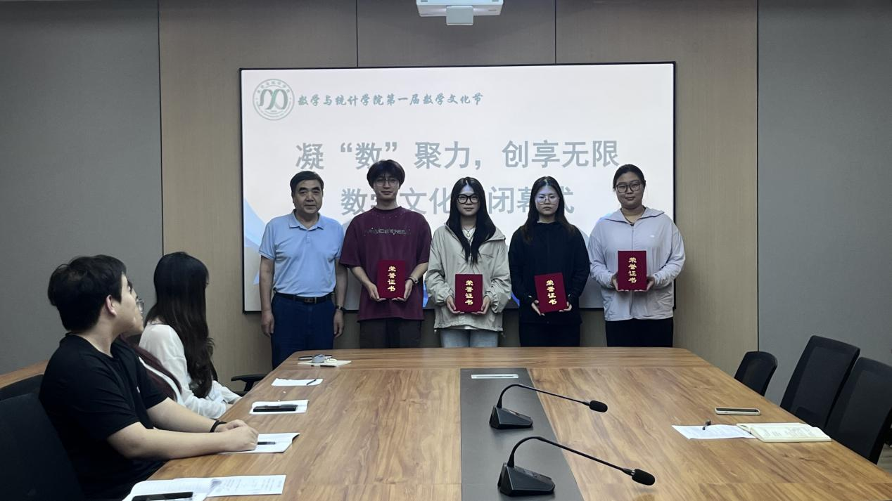 5月20日,数学与统计学院在社科楼419会议室举行第一届“凝数聚力,畅享无限”数学文化节闭幕仪式。院长俞迎达、党总支书记高昌慧、团总支书记胡涛及获奖师生代表参加活动。
