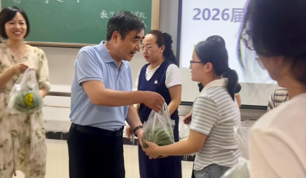 随后领导老师们为同学们一一送上慰问品西瓜,甜甜的西瓜不仅饱含着学院对同学们深深的祝福,同时承载着学院对考研学子的殷切关怀。