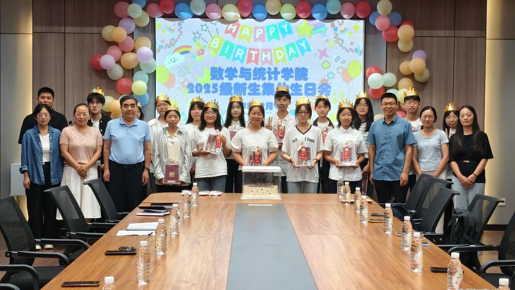 随后,学院全体领导老师为新生戴生日帽,送上伴手礼,共唱生日歌,分享蛋糕。歌声里满是温暖,不少新生眼中泛起感动的泪光。新生们纷纷表达感谢,有的同学表示“这是第一次在异乡过集体生日,老师的陪伴让我特别温暖,感觉自己真正融入了数学与统计学院这个大家庭”。