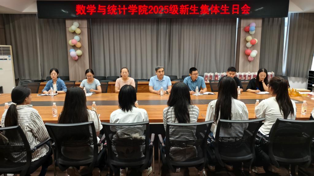 为让2025级新生快速融入学院大家庭,感受集体温暖,9月9日上午,数学与统计学院精心策划并举办新生集体生日会。数学与统计学院院长俞迎达、党总支书记郭二军、学工干事田媛及全体辅导员参加了生日会,生日会由郭二军主持。