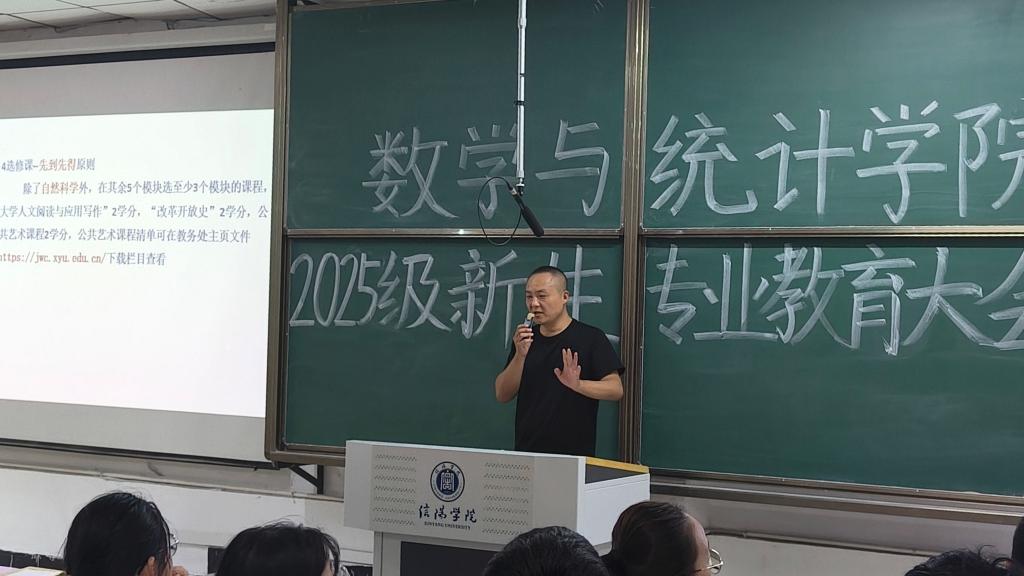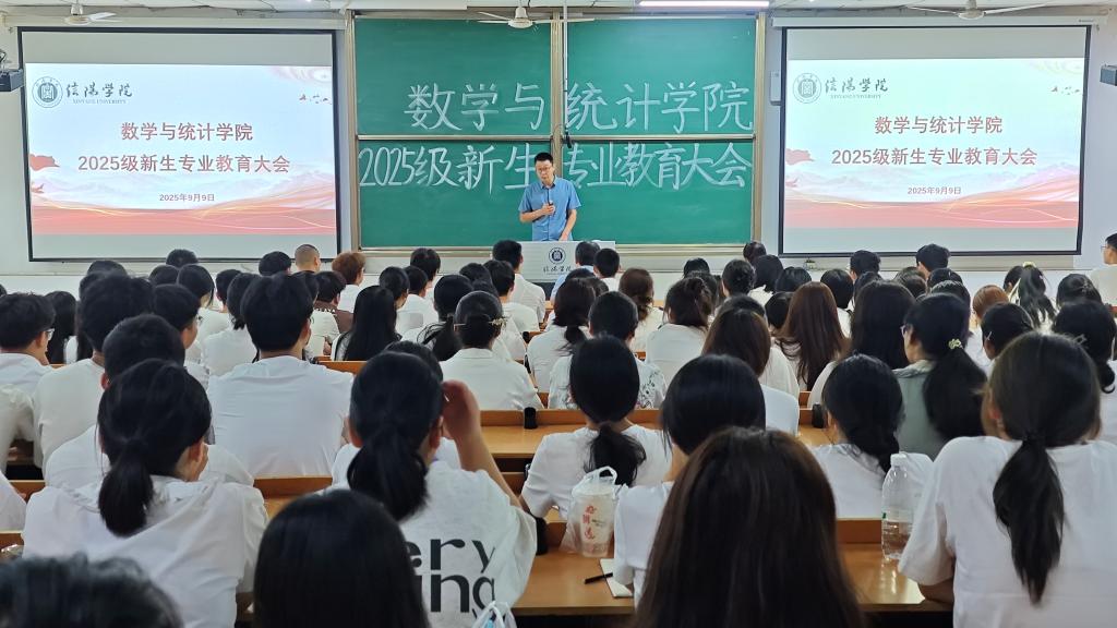 为帮助2025级新生快速了解专业、适应大学学习生活,明确发展方向,9月9日上午,数学与统计学院组织召开2025级新生专业教育大会。学院院长俞迎达、党总支书记郭二军、教学副院长张聪、学工干事田媛及全体辅导员出席会议,2025级全体新生参会。