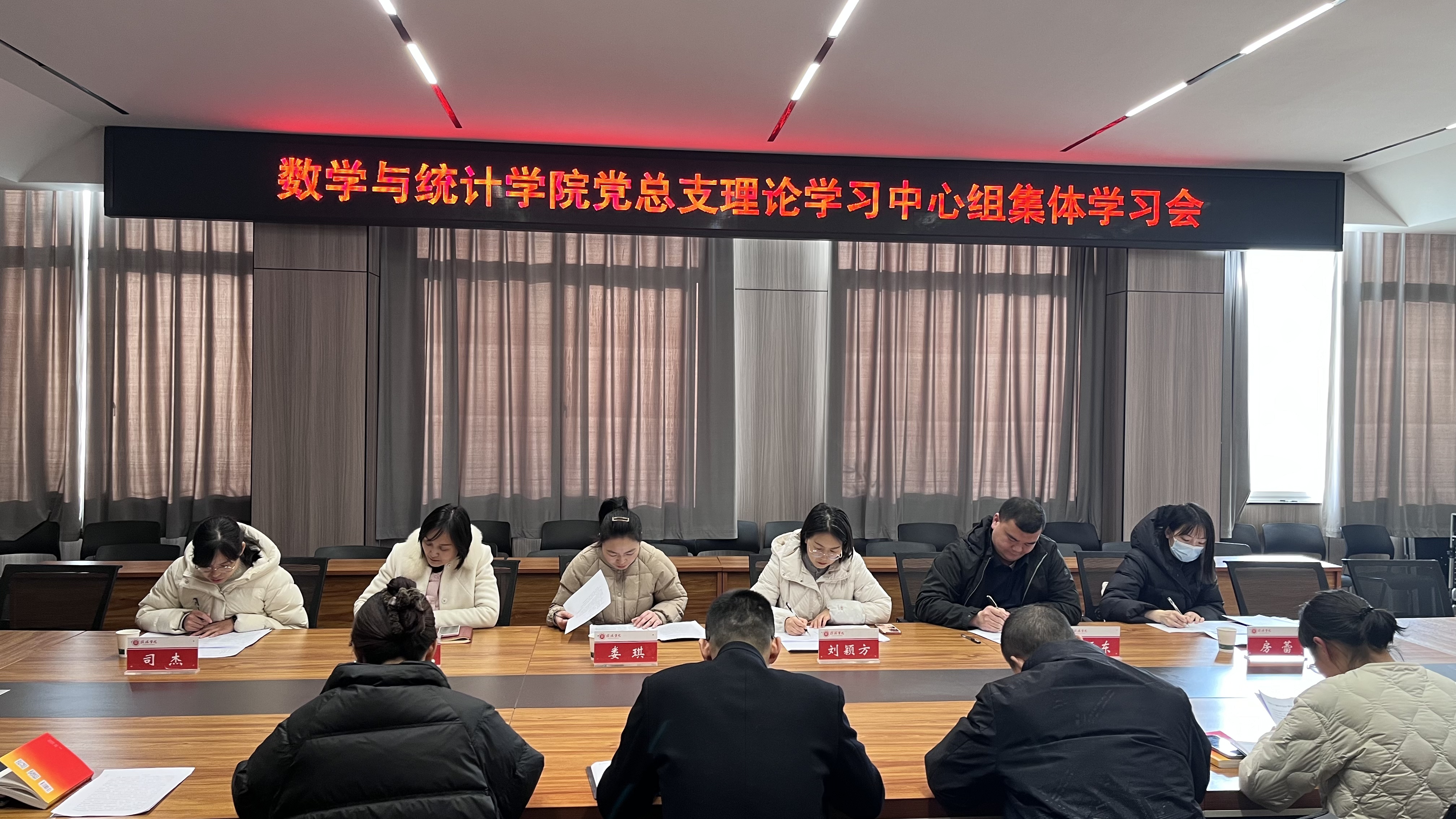 12月15日下午,数学与统计学院党总支理论学习中心组在社科楼109会议室召开12月份集体学习会。会议以“学习贯彻党的二十届四中全会精神,推动学院高质量发展”为主题,学校巡听旁听组第二组组长娄琪及组员刘颖方、赵佳、徐远东、司杰、房蕾莅临指导。学院党总支委员、各支部书记参加学习,会议由学院党总支书记郭二军主持。