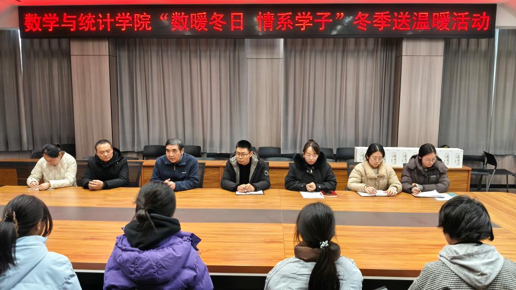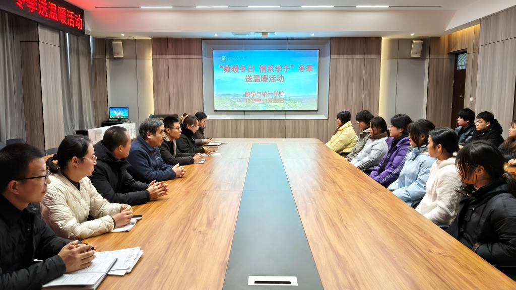 为切实关怀家庭经济困难学生,传递学院的温暖与关怀,12月25日,数学与统计学院在社科楼109会议室开展“数暖冬日,情系学子”冬季送温暖活动。学院班子成员、全体辅导员及家庭经济困难学生代表参与本次活动,活动由学工干事田媛主持。