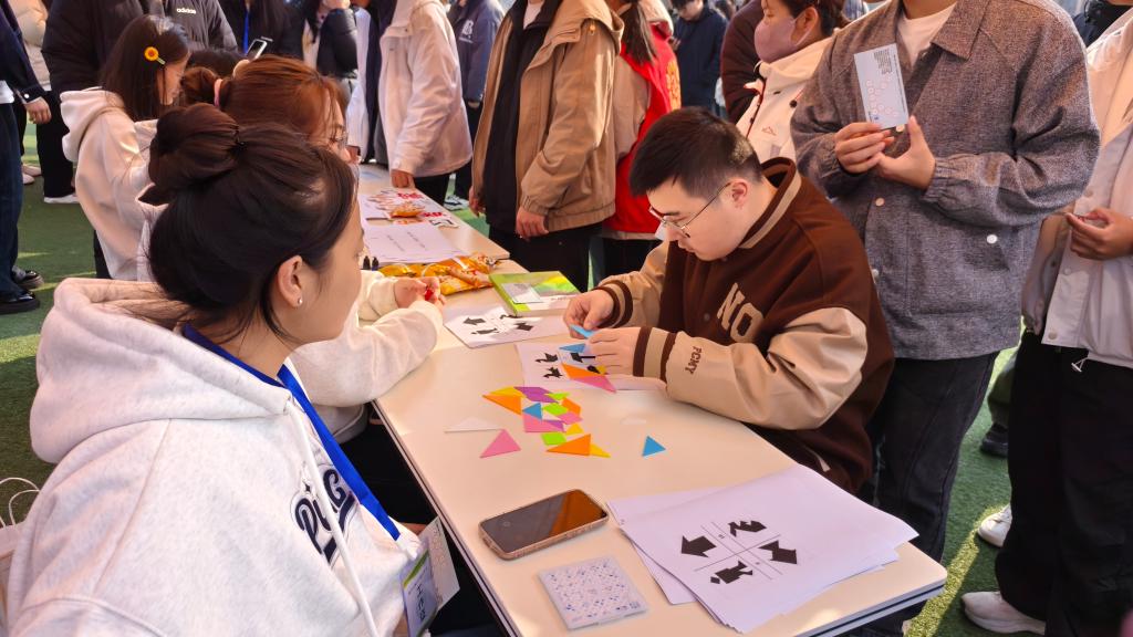 开幕式结束后,师生们一同参与了趣味盎然的数学游园会活动,开启了沉浸式的数学趣味体验。游园会精心设置了多个特色数学主题区域,涵盖24点闪算、数独挑战、数字华容道、巴什博弈、玩转七巧板和数字谜语等丰富项目,将抽象的数学知识与趣味游戏深度融合。