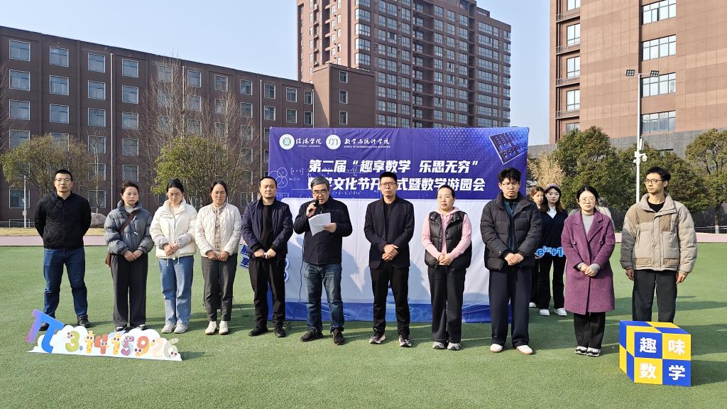 为丰富校园文化生活,延续学院数学文化品牌,推动数学学科与校园文化的融合发展,3月14日上午,数学与统计学院在音乐厅旁操场举办第二届“趣享数学,乐思无穷”数学文化节开幕式。院长俞迎达、党总支书记郭二军、副院长张聪、学工干事田媛、行政干事闫珍珠、教师代表、全体辅导员及150余名学生代表参加了开幕式,开幕式由郭二军主持。