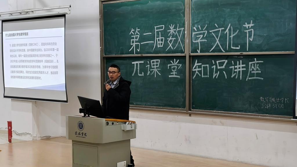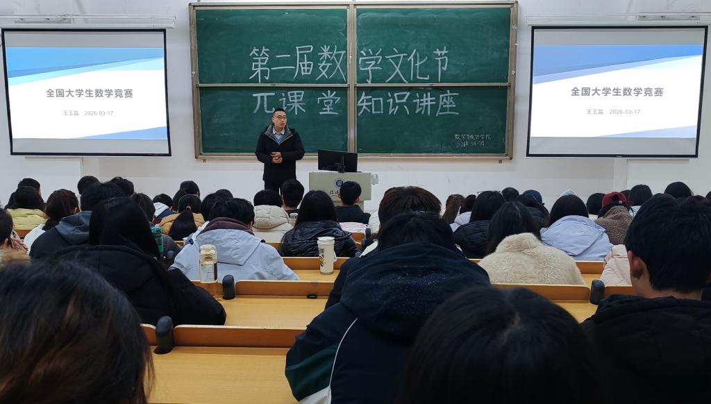 为提升学生数学竞赛备赛素养,激发学习热情,3月17日,数学与统计学院在综合楼202教室举办第二届数学文化节“π课堂”系列活动—数学竞赛知识讲座。特邀学院资深指导教师王玉磊副教授担任主讲,各年级学生代表200余人积极参与。
